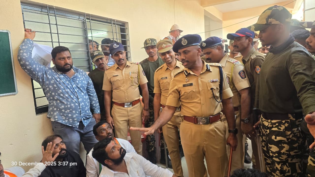 या आंदोलनाने तीव्र रूप धारण केले मोठ मोठ्या आवाजात घोषणाबाजी देण्यात आले, अन्याय झाल्याचं आरोप करण्यात आलं. दरम्यान महापालिकेचे आयुक्त ओंबासे पोलिस आयुक्त एम राजकुमार हे येऊन आंदोलन बंद करण्यासाठी मनधरणी करून समजावण्याचे प्रयत्न केले. मात्र आंदोलन शिंदेसेने व काँग्रेस कार्यकर्ते आपल्या भूमिकेवर ठाम राहिले. यामुळे आंदोलन शमविण्यात प्रशासनाला कमालीचे अपयश आल्याचे चित्र दिसून आले. गोंधळ मात्र प्रचंड मोठा होता यामध्ये विरोधी पक्षासह सत्ताधारी पक्ष शिंदे सेना राष्ट्रवादी ही देखील सामील होते यामध्ये अशोक निंबर्गी मनसेचे महेश इंगळे चेतन नरोटे शिंदे सेनेचे अमोल शिंदे उबाठा चे अजय दासरी रफिक शेख सह अन्य कार्यकर्ते यांनी ठिय्या आंदोलनास बसले आहेत.