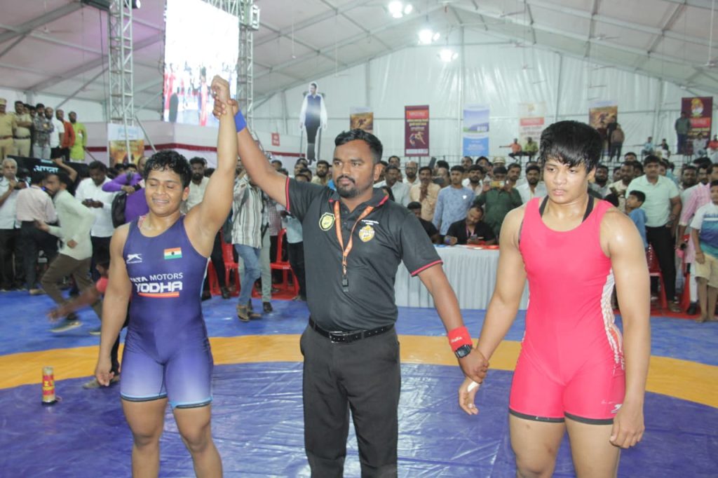 59 किलो ः धनश्री फंड (अहिल्यानगर)विजयी विरुद्ध अमेघा घरत (रायगड) 6-5.