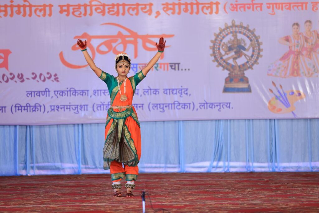 सांगोला, दि.8- पुण्यश्लोक अहिल्यादेवी होळकर सोलापूर विद्यापीठाचा 21 वा युवा महोत्सव सांगोला महाविद्यालयात मोठ्या उत्साहात सुरू असून, महोत्सवाच्या दुसऱ्या दिवशी शास्त्रीय नृत्यांच्या सादरीकरणाने प्रेक्षकांच्या मनावर गारुड केले.या नृत्य स्पर्धेत विविध 10 महाविद्यालयांमधून आलेल्या विद्यार्थिनींनी सहभाग घेतला. कार्यक्रमाची सुरुवात पारंपरिक भरतनाट्यम, कत्थक आणि कुचिपुडी अशा विविध शास्त्रीय नृत्यप्रकारांनी झाली. प्रत्येक नृत्य सादरीकरणाने कलाप्रेमींना मंत्रमुग्ध केले. मंगळवेढ्यातील दलितमित्र कदम गुरुजी महाविद्यालयाच्या तृप्ती अण्णे हिने तिच्या प्रभावी नृत्य सादरीकरणातून रसिकांची वाहवा मिळवली. तिने सादर केलेल्या नृत्याने नृत्यकलेतील बारकावे आणि शिस्त यांचा सुंदर मिलाफ साधला.
