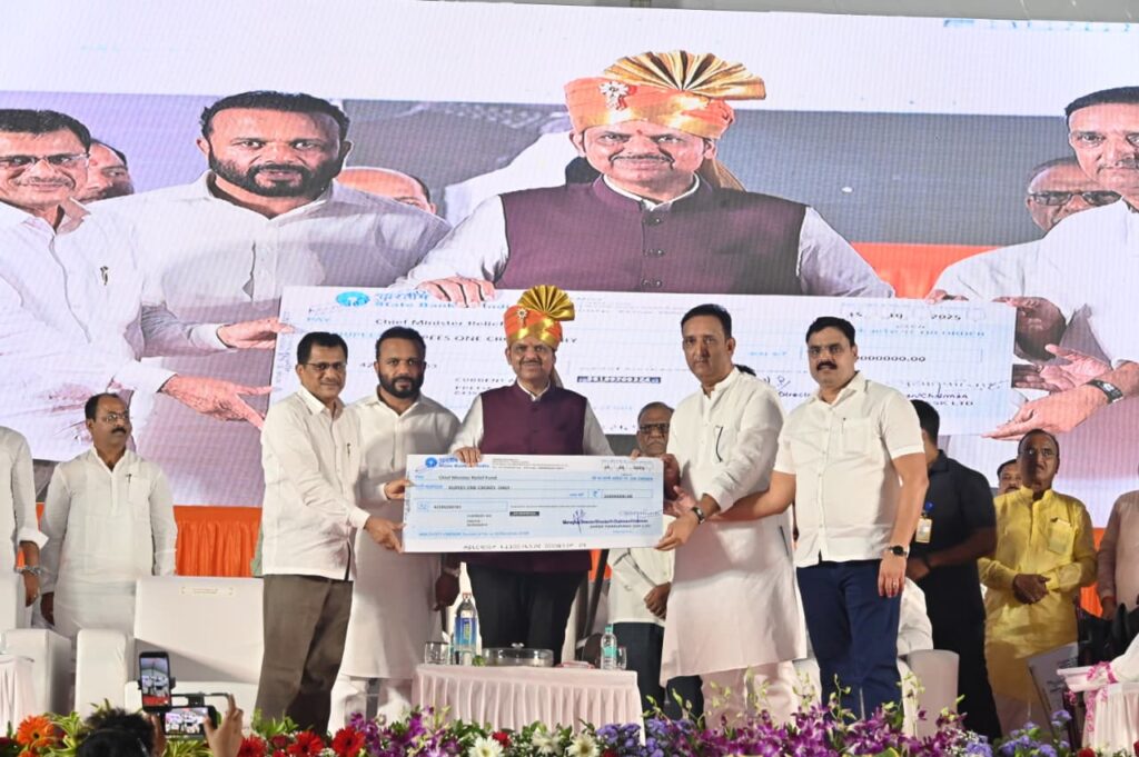 कर्मयोगी सुधाकरपंत परिचारक पांडुरंग सहकारी साखर कारखान्याच्यावतीने मुख्यमंत्री निधीसाठी एक कोटी रुपयांचा धनादेश श्री.फडणवीस यांच्याकडे सुपूर्द करण्यात आला.