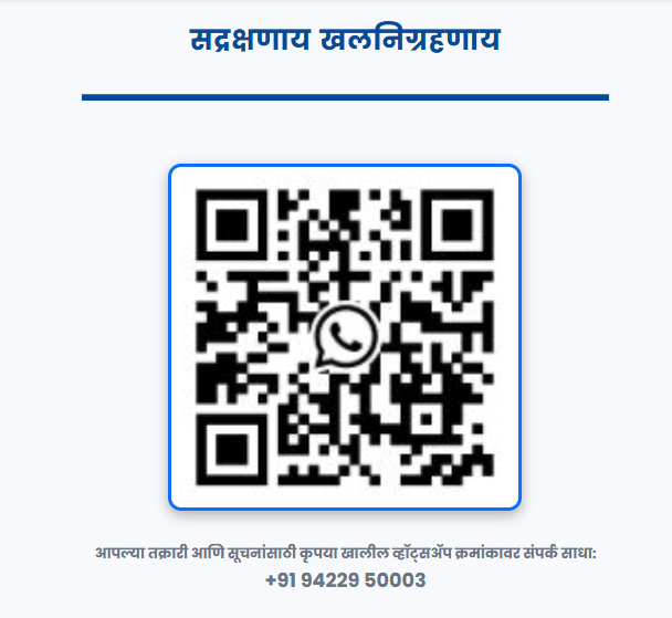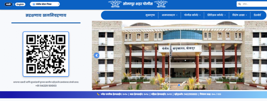 संकेतस्थळावर सोलापूर शहर नियंत्रण कक्षाचे Whatsapp नंबर व QR कोड दिला आहे ज्याचा उपयोग करून नागरिक तक्रार व सूचना देऊ शकतात.