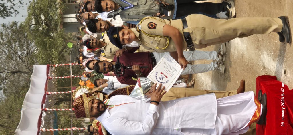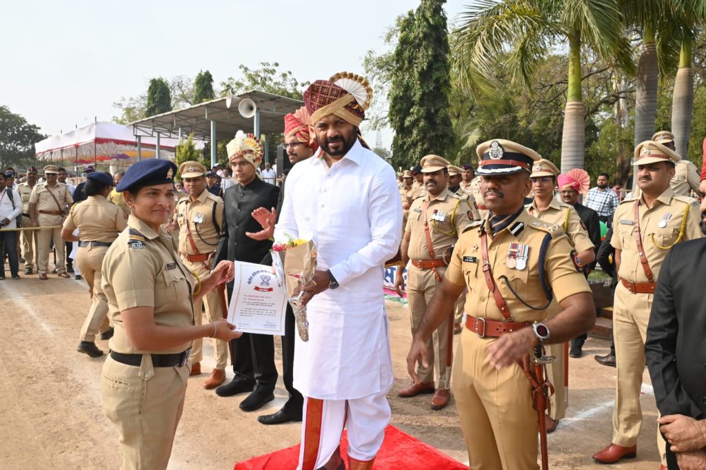 तर पोलीस अधीक्षक कार्यालय सोलापूर ग्रामीण अंतर्गत कार्यरत अधिकारी कर्मचारी यांनी विविध क्रीडा प्रकार तसेच गुन्ह्यांचे तपास पूर्ण करण्यात केलेल्या उल्लेखनीय कामगिरीबद्दल पालकमंत्री जयकुमार गोरे यांनी पुष्पगुच्छ देऊन सन्मान करण्यात आला. यामध्ये श्रीमती अश्विनी दिलीप गाजरे, प्रसाद छगन मांढरे, शिवानंद सौदागरे, दत्तात्रय शंकर बोरिगिड्डे, नागेश राजाराम बनकर, नारायण विनायकराव पवार, नागनाथ जयराम खुणे आदींचा समावेश आहे.