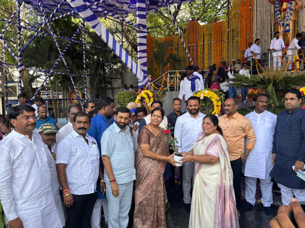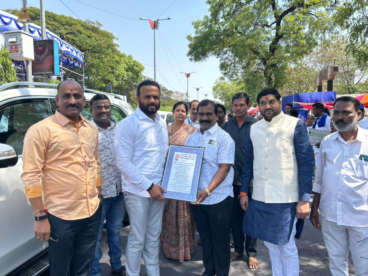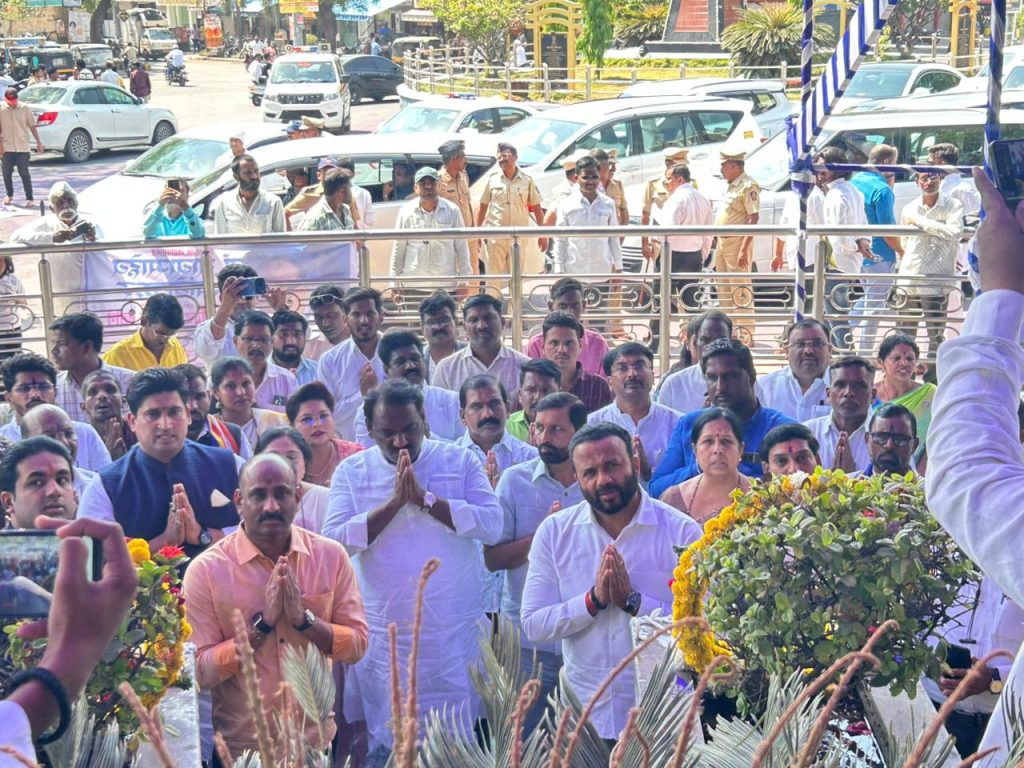 सोलापूर; डॉ. बाबासाहेब आंबेडकर यांच्या जयंतीच्या पार्श्वभूमीवर भाजपाचे नगरसेवक किसन जाधव यांनी पार्क चौक येथील डॉ. आंबेडकर यांच्या पूर्णाकृती पुतळ्यास अभिवादन केले. यानंतर त्यांनी जिल्ह्याचे पालकमंत्री नामदार जयकुमार गोरे यांना भारतीय संविधानाची प्रतिमा भेट देत आंबेडकरांच्या विचारांनाअभिवादन केले. या कार्यक्रमाला अक्कलकोटचे आमदार सचिन कल्याणशेट्टी, आमदार देवेंद्र कोठे, महापौर विनायक दादा कोंड्याल, भाजपा शहराध्यक्षा रोहिणीताई तडवळकर, भाजपा नेते शहाजी पवार, तसेच नगरसेवक गणेश वानकर, मनीष केत, सिद्धेश्वर कमटम, संजय भंडगे, संतोष ऋतिक गायकवाड, माणिक कांबळे, महादेव राठोड, यल्लाप्पा शिवपुरी आदी मान्यवर उपस्थित होते