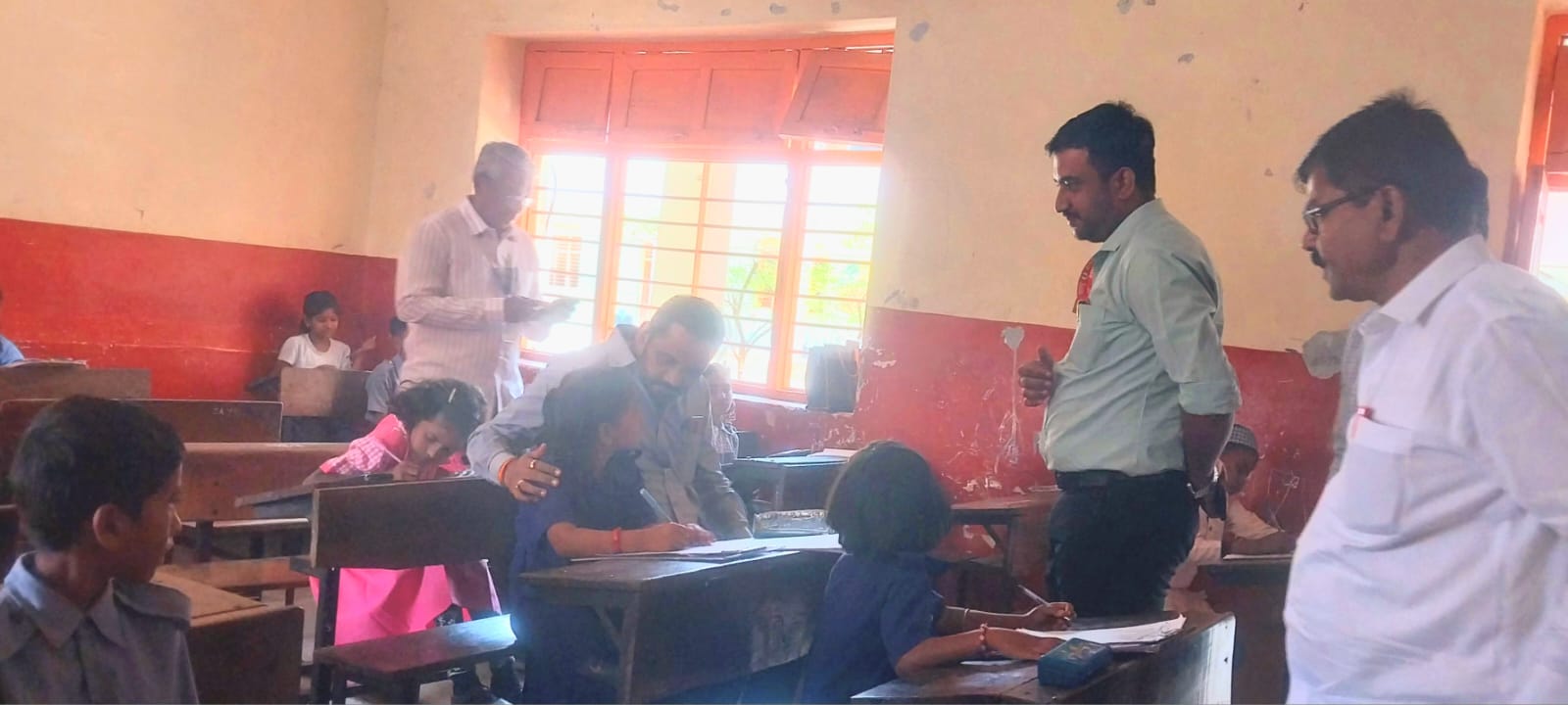 विद्यार्थ्यांशी साधला संवाद.. इंद्रजीत पवार यांनी परीक्षा केंद्रांना भेटी दिल्यानंतर विद्यार्थ्यांशी त्यांनी संवाद साधला. परीक्षा लिहित असलेल्या प्रत्येक विद्यार्थ्यांजवळ जाऊन, डेस्कवर बसून त्यांनी आपुलकीने विचारपूस केली.