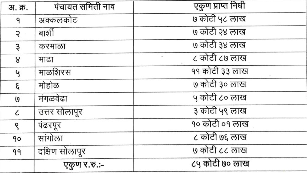 “सोलापूर जिल्ह्यासाठी पालकमंत्र्यांची मोठी भेट; १५ व्या वित्त आयोगातून ८५ कोटी ७० लाखांचा निधी मंजूर!”