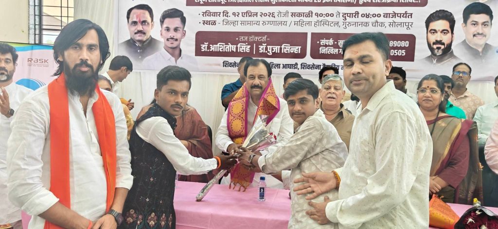 सोलापूर: राज्याचे उपमुख्यमंत्री एकनाथ शिंदे यांच्या वाढदिवसाचे औचित्य साधून सोलापूर येथे आयोजित करण्यात आलेले मोफत २डी इको, हृदय तपासणी आणि शस्त्रक्रिया शिबिर अत्यंत उत्साहात आणि यशस्वीरीत्या पार पडले. शिवसेना वैद्यकीय मदत कक्ष, डॉ. श्रीकांत शिंदे फाऊंडेशन, ज्युपिटर हॉस्पिटल, आरोग्यदूत फाऊंडेशन आणि शिवसेना सोलापूर जिल्हा यांच्या संयुक्त विद्यमाने या भव्य उपक्रमाचे आयोजन करण्यात आले होते.या शिबिराचे उद्घाटन नवनिर्वाचित राज्यसभा खासदार ज्योती वाघमारे, सोलापूर जिल्हा संपर्क प्रमुख दगडू सकपाळ आणि माजी राज्यमंत्री सिद्धराम म्हेत्रे आणि सोलापूर वैद्यकीय मदत पक्षाचे सुरज जम्मा यांच्या प्रमुख उपस्थितीत झाले.