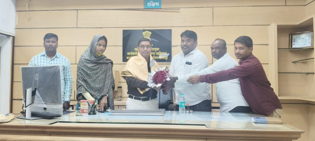दक्षिण सोलापूर : मंद्रूपचे तहसीलदार सुजित नरहरे यांची हिंगोली येथे सहायक मुद्रांक जिल्हाधिकारी म्हणून पदोन्नती झाल्याने गडहिंग्लजचे नायब तहसीलदार विष्णू नामदेव बुटे यांची मंद्रूपचे तहसीलदार म्हणून नियुक्ती करण्यात आली आहे. शुक्रवारी तहसीलदार बुटे यांनी पदभार स्वीकारला. तासगाव तालुक्यातील विसापूर येथील बुटे यांनी यापूर्वी सांगोला ,माढा, भुदरगड व गडहिंग्लज येथे नायब तहसीलदार म्हणून उत्कृष्ट काम केला आहे.