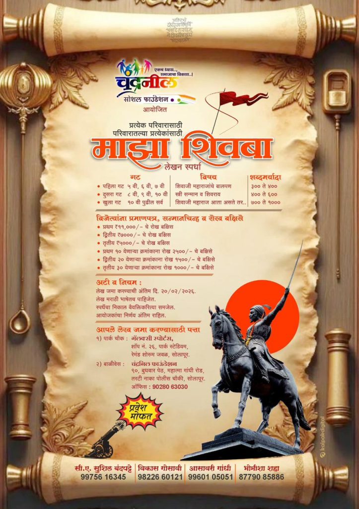 चंद्रनील सोशल फाउंडेशनतर्फे ‘माझा शिवबा’ लेखन स्पर्धा