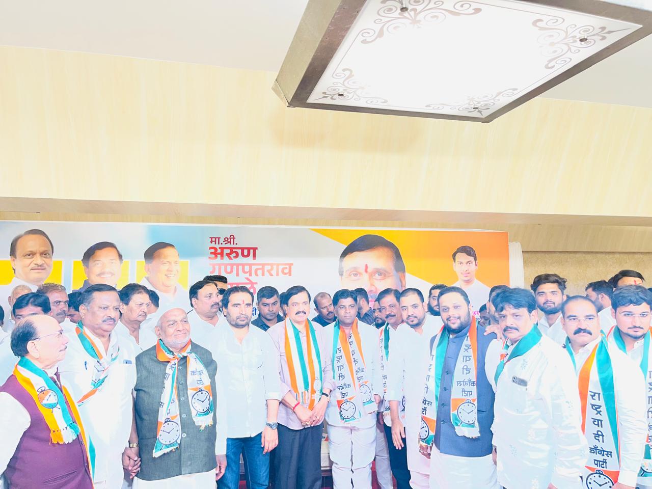 सोलापूर : राष्ट्रवादीचे राष्ट्रीय अध्यक्ष अजितदादा पवार यांच्या विकासात्मक दृष्टीकोन आणि एकात्मतेवर आधारित राष्ट्रवादीची वाटचलीवर आकर्षित होऊन सोलापूर शहरातील काँग्रेस पक्षाचे माजी सभागृह नेते हाजी मकबूल मोहळकर, माजी नगरसेवक सिद्धेश्वर आळंदकर, काँग्रेसचे माजी परिवहन सभापती सलिम पामा, काँग्रेस पक्षाचे अल्पसंख्यांक युवक अध्यक्ष नजीब शेख, न्यायालयीन कर्मचारी संघटनेचे माजी अध्यक्ष भारत साबळे, मगबुल मोहळकर यांचे चिरंजीव ॲड. ताजुदीन मोहळकर याच्यासह अनेक मान्यवरांनी आज मुंबई येथील महाराष्ट्र महीला विकास मंडळ सभागृहात राष्ट्रवादीचे प्रदेशाध्यक्ष खा.सुनील तटकरे साहेब याच्या प्रमुख उपस्थितीत पक्ष प्रवेश केला.
