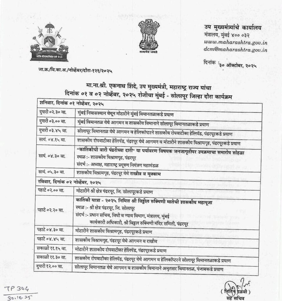 उपमुख्यमंत्री एकनाथ शिंदे यांचा सोलापूर दौरा