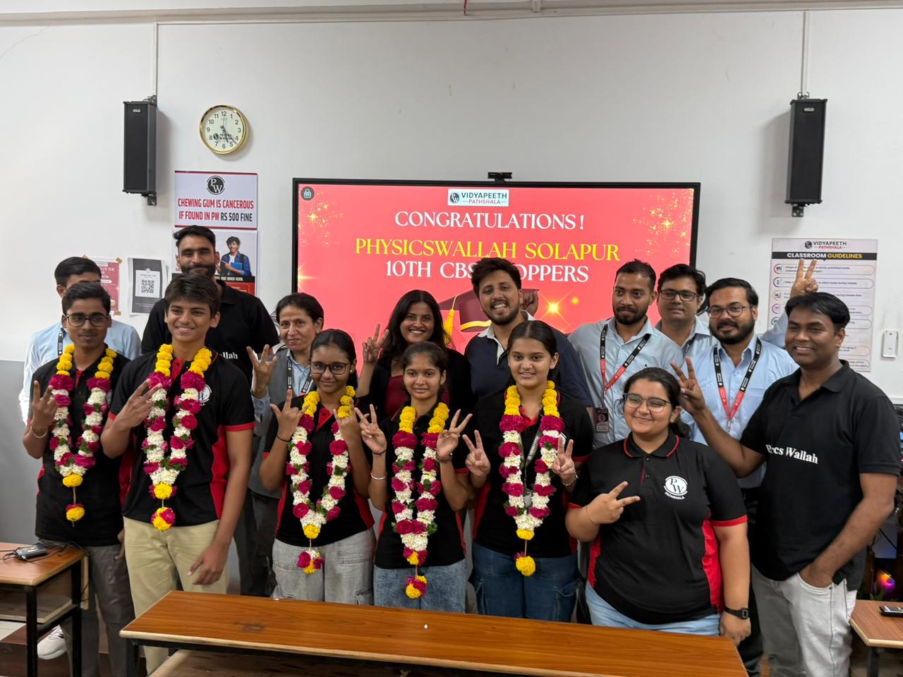 सोलापूर ; शिक्षण क्षेत्रातील अग्रगण्य संस्था फिजिक्सवाला (पीडब्लू) साठी गुरुवारचा दिवस उत्सवाचा ठरला. सीबीएसई इयत्ता 10 वी बोर्ड परीक्षा 2026 मध्ये संस्थेच्या विद्यार्थ्यांनी उल्लेखनीय कामगिरी करत उच्च गुण मिळवले असून, काही विद्यार्थ्यांनी 100% गुणांचीही कामगिरी केली आहे. देशातील अव्वल कामगिरी करणाऱ्या विद्यार्थ्यांमध्ये पंजाबमधील फाजिल्का येथील वैभव अरोरा,गुजरातमधील अहमदाबाद येथील अमोलिक पंडिता आणि ओडिशातील भुवनेश्वर येथील आयुष्यमान मोहापात्रा यांनी 100% गुण मिळवत देशात प्रथम क्रमांक पटकावला आहे. फिजिक्सवालाच्या तंत्रज्ञान-सक्षम हायब्रिड शिक्षण केंद्र ‘पीडब्लू विद्यापीठ पाठशाळा’च्या सोलापूर शाखेत यानिमित्त विशेष सत्कार समारंभाचे आयोजन करण्यात आले.सीबीएसई 10 वी बोर्ड परीक्षा 2026 मध्ये उत्कृष्ट यश मिळवणाऱ्या सोलापूरमधील विद्यार्थ्यांचा यावेळी सन्मान करण्यात आला. सोलापूरमधील यशराज प्रविण भोसले याने 99% गुण मिळवत उल्लेखनीय कामगिरी केली आहे.