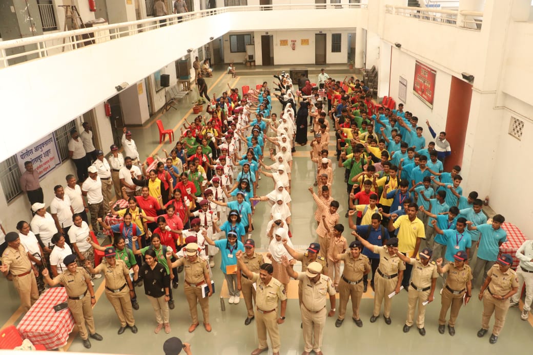 सोलापूर : पोलिस रेझिंग डेच्या पोलिस आयुक्तालयात शहरातील शाळांमधील विद्यार्थ्यांना पोलिसांचे काम, कर्तव्य, सायबर सेल, रेझिंग डे, डायल ११२, आदी विषयी पोलिसांनी माहिती दिली. यावेळी विद्यार्थ्यांनीही कुतूहलापोटी विविध प्रश्न विचारले, त्यांना समाधानकारक उत्तरे पोलिस आयुक्त एम. राजकुमार यांनी दिली. २ जानेवारी हा दिवस पोलिस रेझिंग डे म्हणून साजरा केला जातो. यानिमित्त शहरातील शाळांमधील विद्यार्थ्यांसाठी पोलिस आयुक्तालयात कार्यक्रमाचे आयोजन करण्यात आले. यात के. एल. ई. इंग्लिश २ जानेवारी १९ ६१ रोजी राज्यात पोलिस दलाची स्थापना झाली मीडियम स्कूल, पोदार इंटरनॅशनल स्कूल, कॅम्प शाळा येथील २०० विद्यार्थ्यांनी सहभाग नोंदविला. यावेळी विद्यार्थ्यांना पोलिस बॅन्डचे प्रात्यक्षिक दाखविण्यात आले. यावेळी पोलिस आयुक्त एम. राजकुमार, उपायुक्त गौहर हसन, विजय कबाडे, डॉ. अश्विनी पाटील, सहायक पोलीस आयुक्त राजन माने यांची प्रमुख उपस्थिती होती