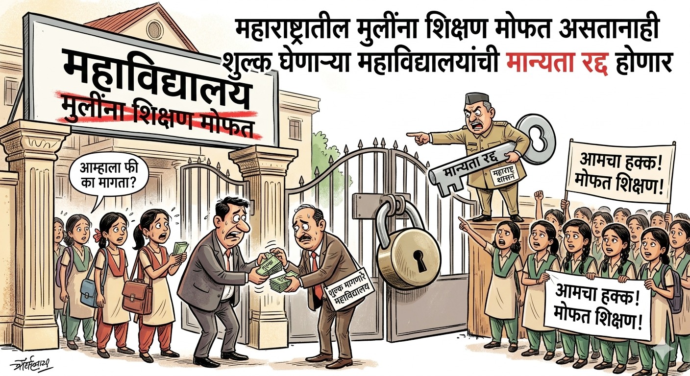 त्यामुळे संबंधित संस्थांमध्ये खळबळ उडाली आहे.राज्य शासनाच्या निर्णयानुसार मुलींना शिक्षणासाठी प्रोत्साहन देण्यासाठी फी माफी, निर्वाह भत्ता आणि ‘कमवा व शिका’ सारख्या योजनांची अंमलबजावणी केली जात आहे. मात्र, प्रत्यक्षात काही महाविद्यालये विविध कारणे सांगत विद्यार्थिनींकडून शुल्क घेत असल्याच्या तक्रारी येत आहेत. या पार्श्वभूमीवर शासनाने कठोर भूमिका घेत कारवाईची प्रक्रिया सुरू केली आहे.