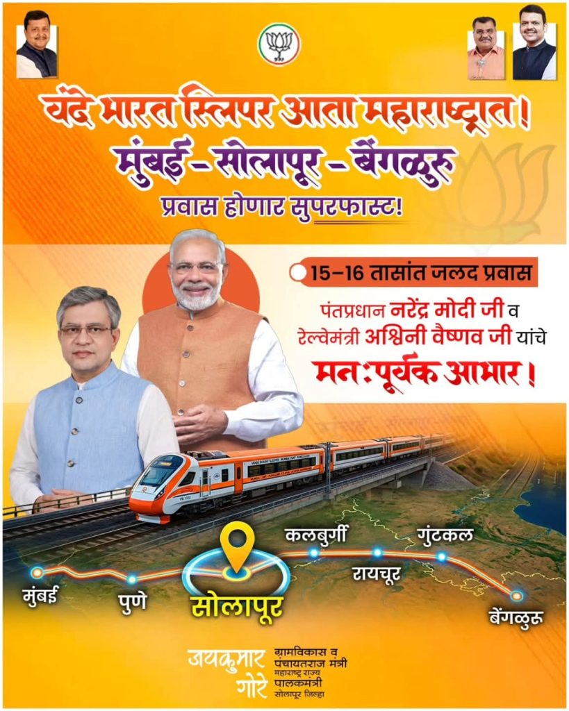 सोलापूर : मुंबई ते बंगळुरू प्रवास करणाऱ्या प्रवाशांसाठी मोठी दिलासादायक बातमी समोर आली आहे. भारतीय रेल्वे लवकरच अत्याधुनिक आणि वेगवान स्लीपर सुविधेसह ‘वंदे भारत’ एक्सप्रेस सुरू करण्याच्या तयारीत असून, या नव्या सेवेचा सर्वाधिक लाभ पुणे आणि सोलापूर मार्गावरील प्रवाशांना होणार आहे.