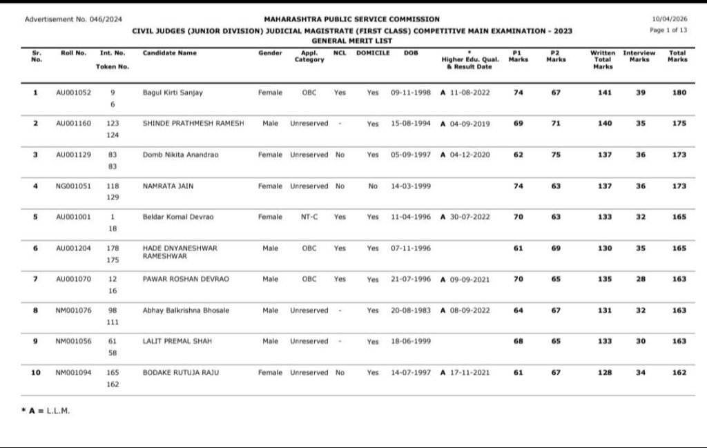 सोलापूर: महाराष्ट्र लोकसेवा आयोगाच्या (MPSC) वतीने घेण्यात आलेल्या दिवाणी न्यायाधीश (कनिष्ठ स्तर) व न्यायदंडाधिकारी (प्रथम वर्ग) म्हणजेच Jmc परीक्षेचा अंतिम निकाल जाहीर झाला असून, सोलापूरच्या शिरपेचात मानाचा तुरा रोवला गेला आहे. सोलापूरचे सुपुत्र प्रथमेश शिंदे यांनी या परीक्षेत संपूर्ण महाराष्ट्रात द्वितीय क्रमांक पटकावून घवघवीत यश संपादन केले आहे. त्यांच्या या निवडीमुळे सोलापूरच्या विधी क्षेत्रात आनंदाचे वातावरण पसरले असून सर्वच स्तरातून त्यांच्यावर कौतुकाचा वर्षाव होत आहे.