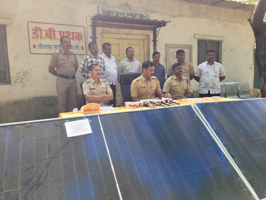 कौठाळी (ता. उत्तर सोलापूर) ते वैराग जाणाऱ्या रोडवर पुरुषोत्तम प्रोफाईल प्रायव्हेट लिमिटेड कंपनीचे सोलार प्लेट वीज निर्मितीचे काम सुरू आहे. या साइटवरून २३ नोव्हेंबर २०२५ ते १८ जानेवारी २०२६ या कालावधीत अज्ञात चोरट्यांनी ८ लाख ७८ हजार १९० रुपये किमतीच्या सोलार प्लेट्स आणि पॅनल स्ट्रक्चरचे अँगल्स चोरून नेले होते. याप्रकरणी आदित्य भाऊसाहेब जाधव यांनी सोलापूर तालुका पोलीस ठाण्यात फिर्याद दिली होती.
