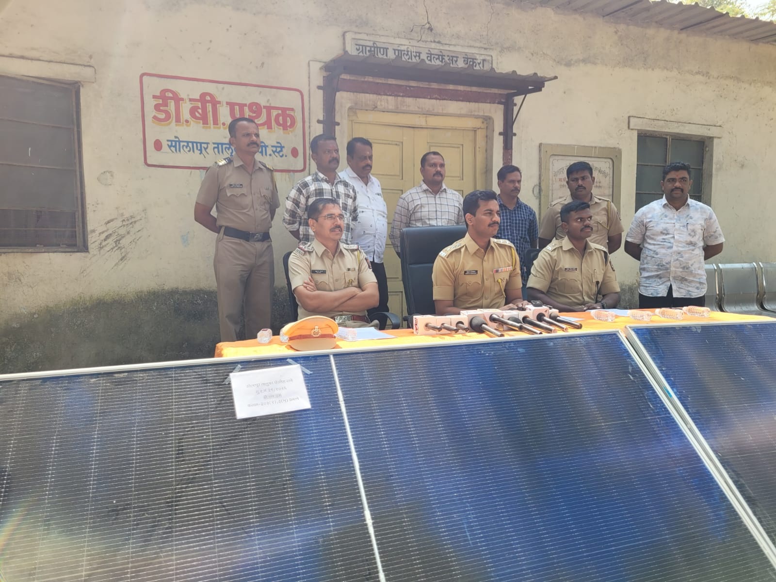 कौठाळी (ता. उत्तर सोलापूर) ते वैराग जाणाऱ्या रोडवर पुरुषोत्तम प्रोफाईल प्रायव्हेट लिमिटेड कंपनीचे सोलार प्लेट वीज निर्मितीचे काम सुरू आहे. या साइटवरून २३ नोव्हेंबर २०२५ ते १८ जानेवारी २०२६ या कालावधीत अज्ञात चोरट्यांनी ८ लाख ७८ हजार १९० रुपये किमतीच्या सोलार प्लेट्स आणि पॅनल स्ट्रक्चरचे अँगल्स चोरून नेले होते. याप्रकरणी आदित्य भाऊसाहेब जाधव यांनी सोलापूर तालुका पोलीस ठाण्यात फिर्याद दिली होती.