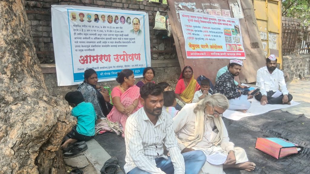 सोलापूर: महसूल प्रशासनातील काही अधिकारी आणि कर्मचाऱ्यांना हाताशी धरून ७-१२ उताऱ्यावरील नावे परस्पर वगळल्याचा धक्कादायक प्रकार माढा तालुक्यातील मोडनिंब येथे समोर आला आहे. वर्षानुवर्षे आपल्या हक्काच्या जमिनीसाठी लढा देणाऱ्या गोरख जिजाबा शिंदे या शेतकऱ्याने आता न्याय मिळत नसल्याने आक्रमक पवित्रा घेतला असून, ९ मार्च २०२६ पासून आपल्या संपूर्ण कुटुंबासह सोलापूर जिल्हाधिकारी कार्यालयासमोर आमरण उपोषणास ही शेतकरी बसले आहे.