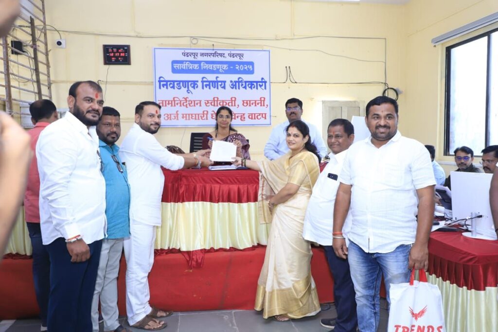 तर माजी आमदार (कै.) भारत भालके यांच्या स्नुषा तथा विठ्ठल कारखान्याचे माजी अध्यक्ष भगिरथ भालके यांच्या पत्नी डाँ.प्रणिता भालके यांनी विठ्ठल परिवाराच्या तिर्थक्षेत्र विकास आघाडीकडून या अगोदरच नगराध्यक्षपदासाठीचा आपला उमेदवारी अर्ज दाखल केला आहे.